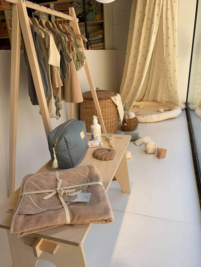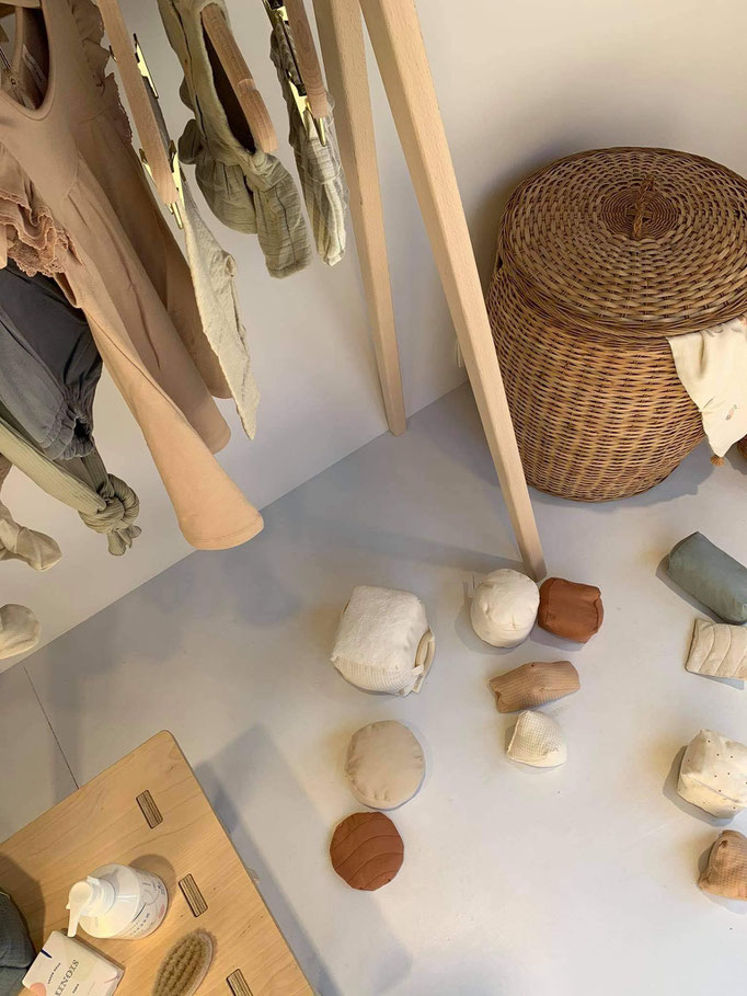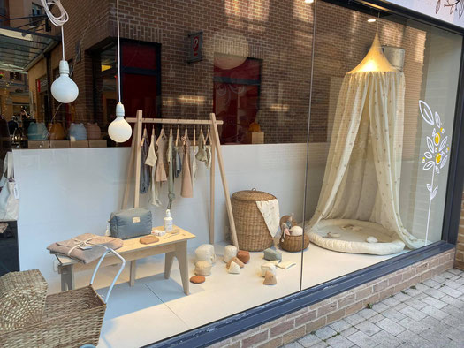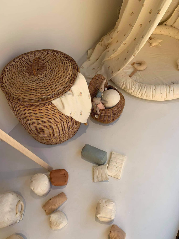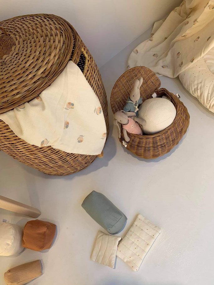 Nous avons également reçu le nouvel imprimé de chez Nobodinoz : BLOSSOM! Un fond coton naturel avec de jolies fleurs aux couleurs pastels. Il y a de nouveaux articles comme le tapis de jeux que vous pouvez voir sous le canopy.