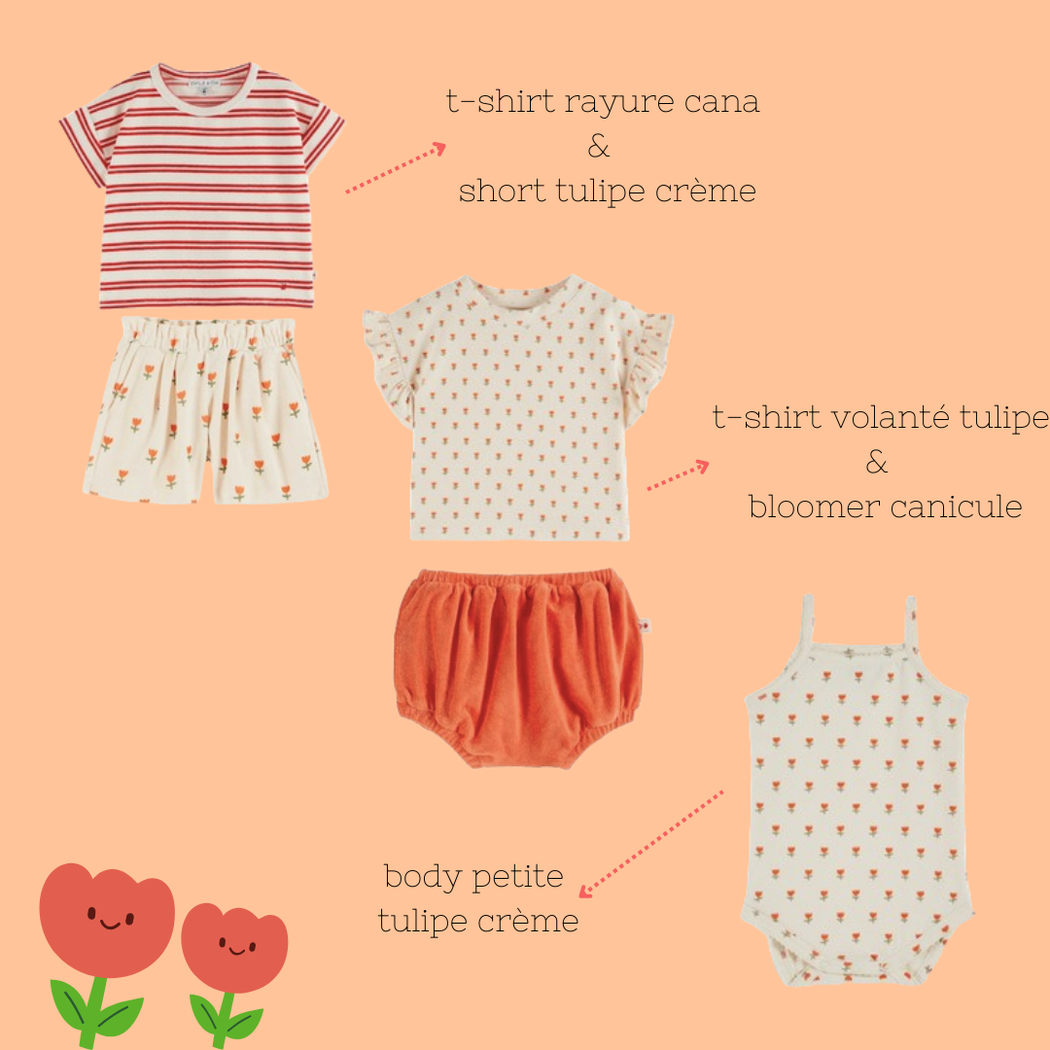 A travers cette collection, vous pourrez découvrir de merveilleux looks remplis de couleurs, de fleurs, de petites tortues ou encore de marinières. 🌷