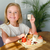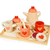 Ce service à thé en bois comprend un plateau à pois, une théière jouet, 2 tasses, soucoupes et cuillères factices, un sucrier factice avec couvercle, un pot à lait factice et 2 biscuits en bois.