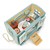Cette cabane de berger est le séjour glamping idéal pour notre nouvelle famille de souris. Elles ont emprunté quelques bibelots à taille humaine pour en faire des meubles indispensables. Une tasse à thé est idéale pour une petite souris, des bobines de fil servent de chaises, une boîte de sardines offre le confort d'un lit bébé et se glisse parfaitement sous un lit simple. Une boîte de piments fait également office de petit poêle à bois. Une épingle à nourrice se transforme en porte-serviettes et une vieille montre indique l'heure. Un petit escalier peut être fixé à la porte d'entrée pour faciliter la descente. On y accède en retirant le toit ou par les petites portes à l'avant.