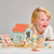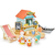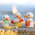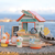 Rencontrez Sandy, la mouette en bois, et sa famille sur la plage. Ils ont aménagé une petite cabane et l'ont transformée en stand de fish and chips. Installés sur deux socles en contreplaqué imitant le sable, ils ont rassemblé deux algues, une chaise longue, une bouilloire, un pot de glace en bois et une cuillère, trois poissons dans un plat, un seau de frites, une pancarte « fish and chips », un château de sable, un bonbon en forme de pierre et un bateau en papier journal. Découvrez Gully, le papa mouette, qui porte un bonnet tricoté et une bouée amovible en bois. Les noms des mouettes sont inscrits en dessous pour que ces petits personnages puissent participer à une aventure en bord de mer pleine d'histoires. Idéal pour les jeux créatifs et imaginatifs.