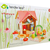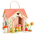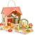 Le chalet en bois le plus mignon du monde. Avec un toit à pignon de couleur rose, des portes d’entrée qui s’ouvrent et un panneau arrière amovible, cette petite maison peut être transportée pour jouer n’importe où. Chaque façade est décorée de belles fleurs sauvages dont les tiges passent à travers les fenêtres, créant une prairie boisée magique. Le panneau arrière s’ouvre et se transforme en jardin sur lequel on peut placer une jolie balançoire, deux fleurs et un champignon. Nous avons inclus un poêle à bois, une table-fleur, deux tabourets-boutons, une lampe-champignon et une table d’appoint. Mets Bud dans son lit douillet en forme de feuille ou pousse Corny sur la balançoire pendant que maman Flora et papa Joey regardent les étoiles.