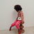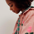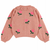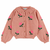Cardigan en laine mohair rose parsemé de grosses roses rose fluo.