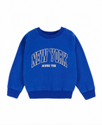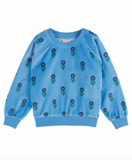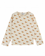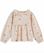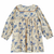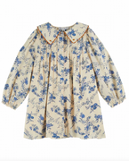 Robe ample en coton ornée de fleurs bleues sur fond écru.